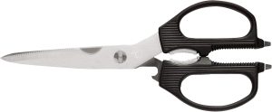 ALL-IN-ONE KITCHEN KNIFE SET – 15-piece knife set includes. 8″ chef’s knife, 8″ slicing knife, 7″ Santoku knife, 8″ serrated bread knife, 5″ utility knife, 3.5″ paring knife, 6 4.5″ serrated steak knives, 1 kitchen shear, knife block with built-in knife sharpener