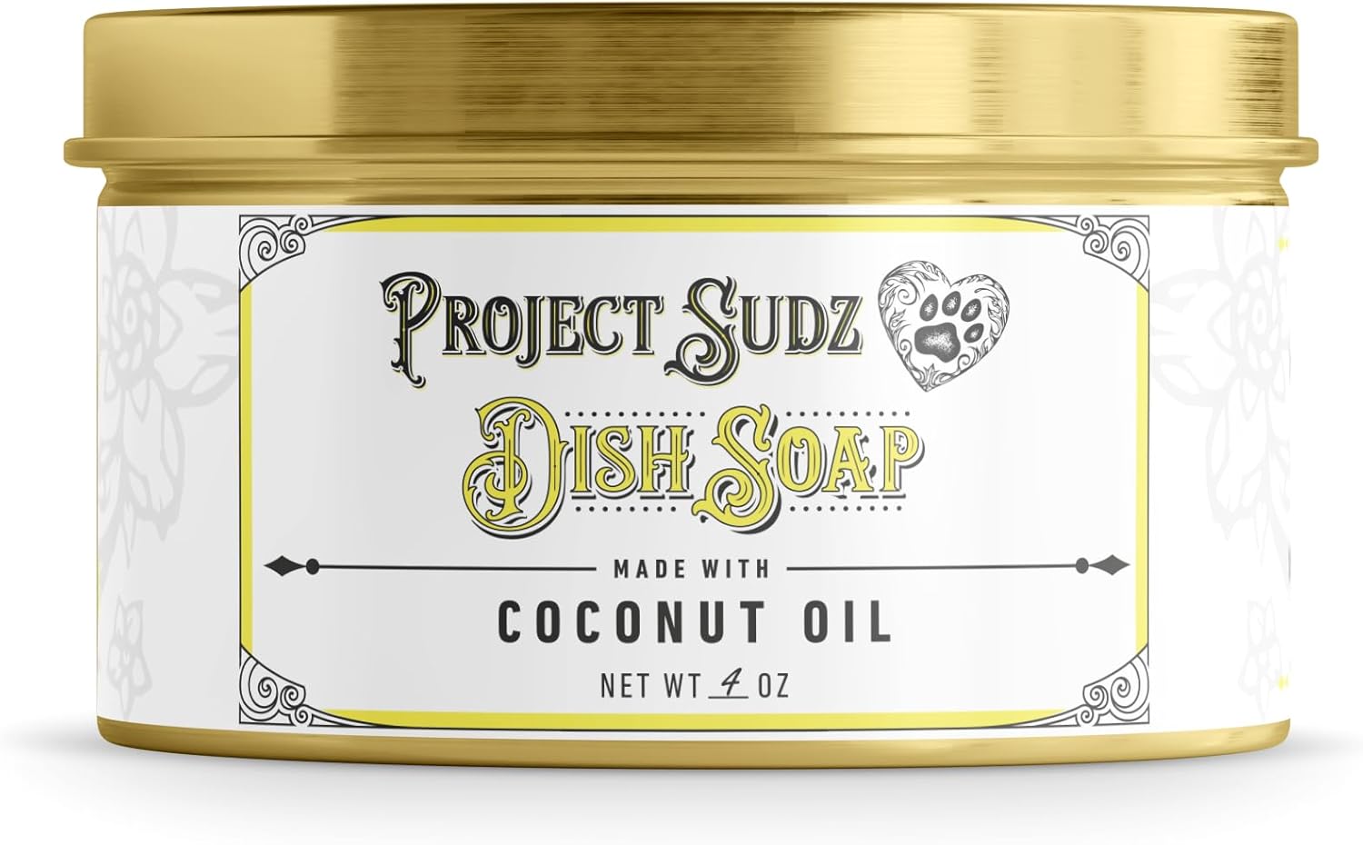 Project Sudz Solid Dish Soap | Plastic-Free Eco-Friendly Dishwashing Block | Made with Coconut Oil | 4 oz Reusable Tin | Zero Waste, Long-Lasting, Non-Toxic Grease Cutter